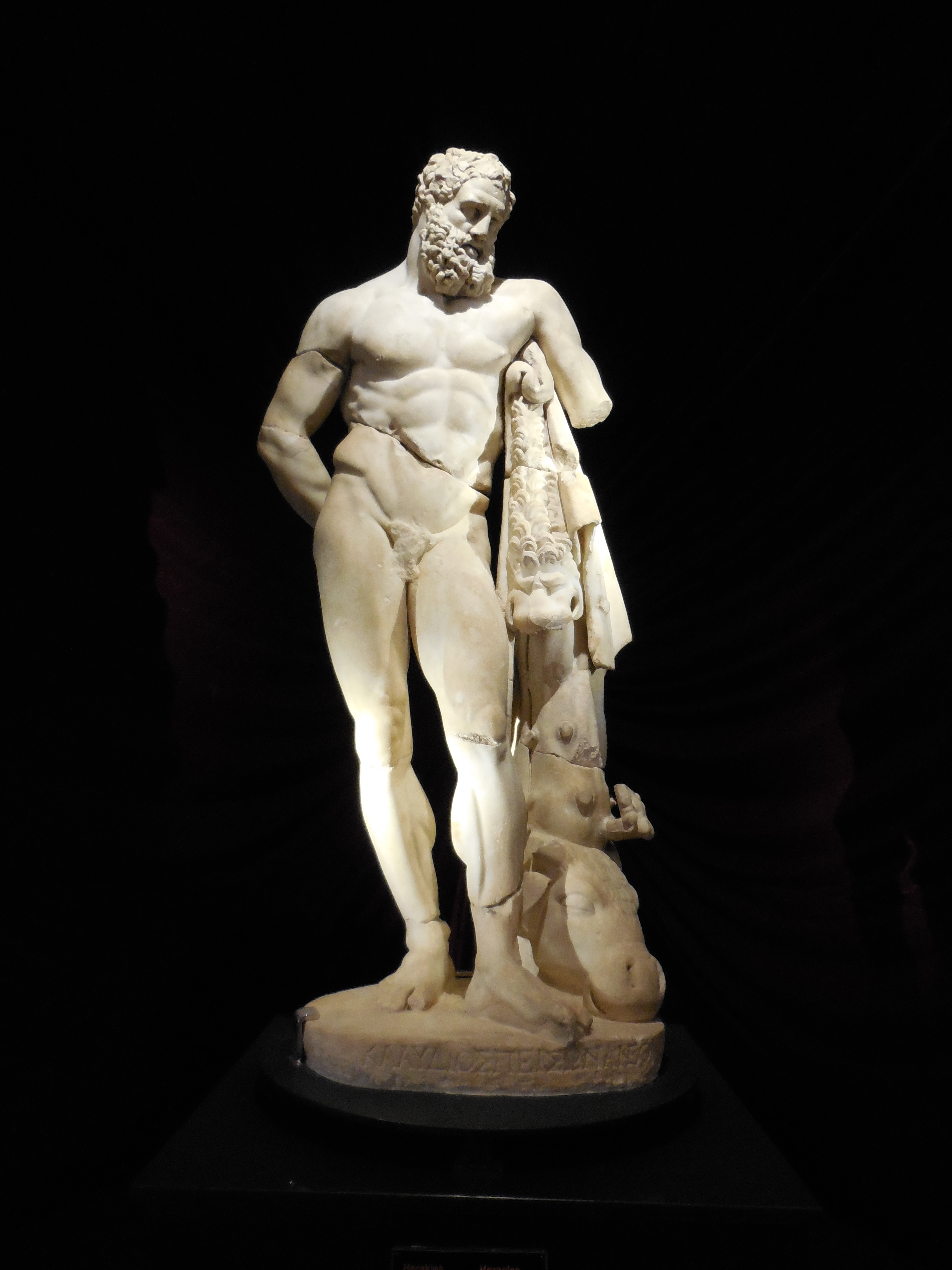 Mighty Hercules occupies a dark recess whilst a brightly lit Aphrodite holds her shield aloft.