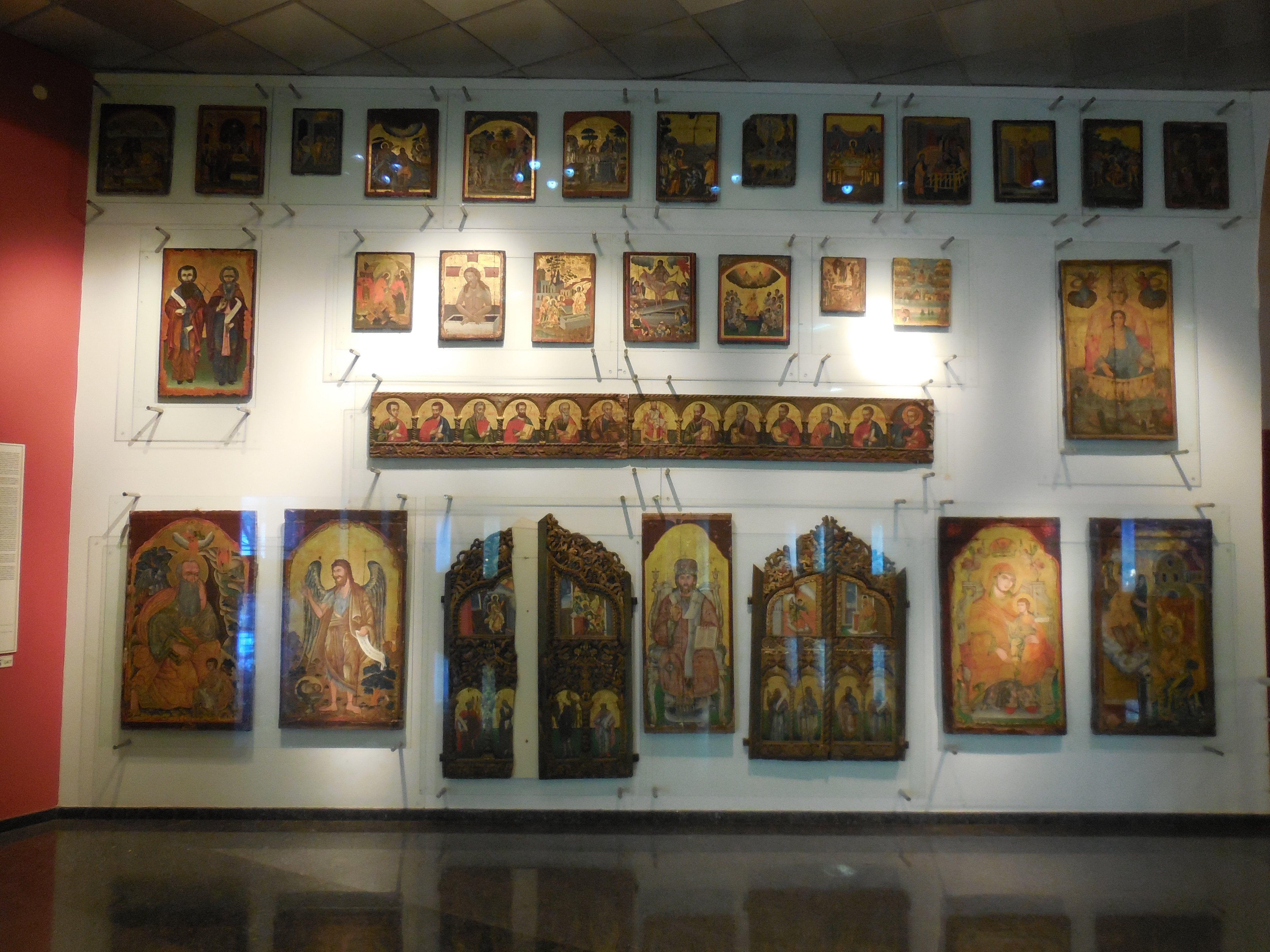 By the time we have completed perusing the lower floor some of the school children are catching up to us so we make our way upstairs where tools, textiles and historical examples of periods of Christendom are housed within glass displays.
