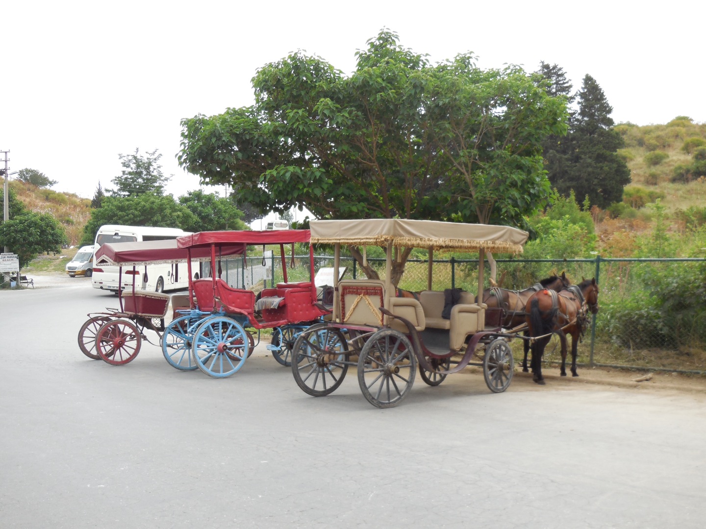 We are swiftly delivered at the end of a long line of parked tourist buses where a few disconsolate looking horses stand attached to carts ready to ferry tourists to the top gate.